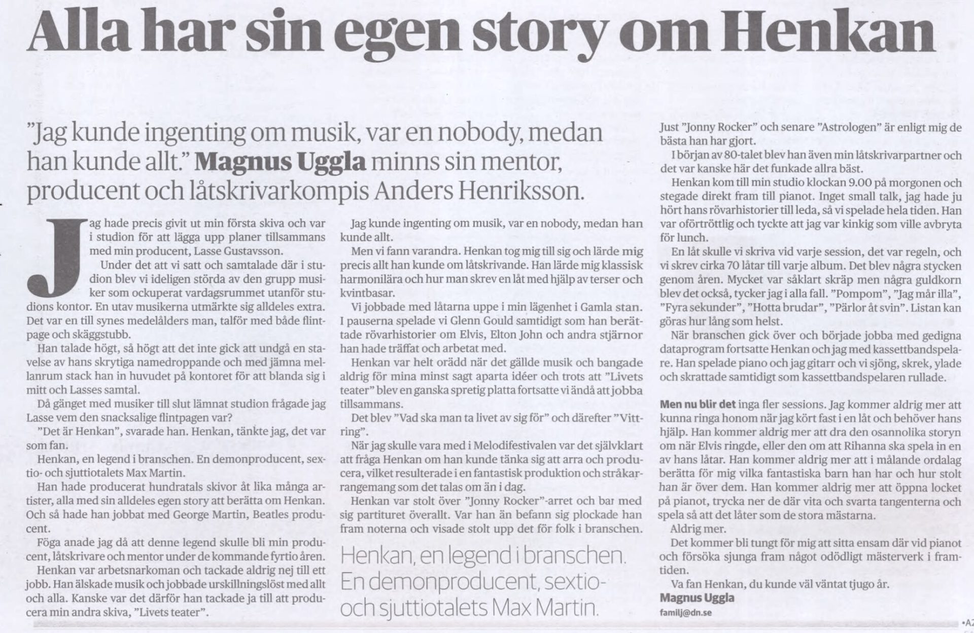 Namnet på vårt projekt om Anders ”Henkan” Henriksson och Karin Stigmark har vi lånat från Magnus Ugglas text om Henkan i Dagens Nyheter 11 december 2016.